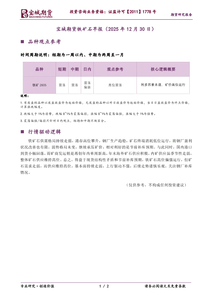 宝城期货-钢材&铁矿石日报:商品情绪变换,钢矿强弱分化-251229