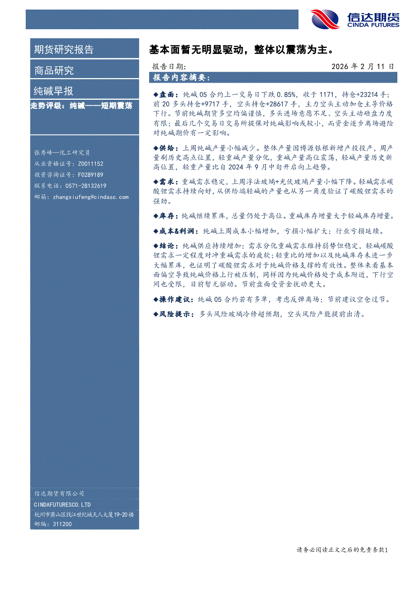 信达期货-纯碱早报:基本面暂无明显驱动,整体以震荡为主-260211