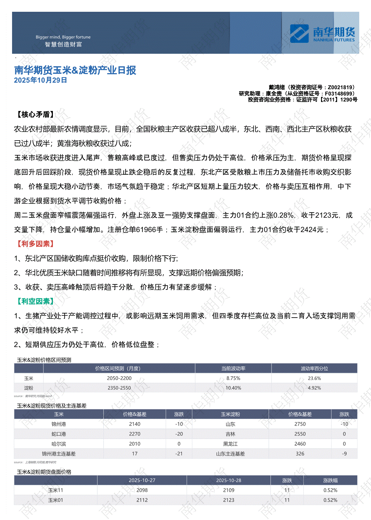 南华期货-玉米&淀粉产业周报:供应压力继续释放-251026