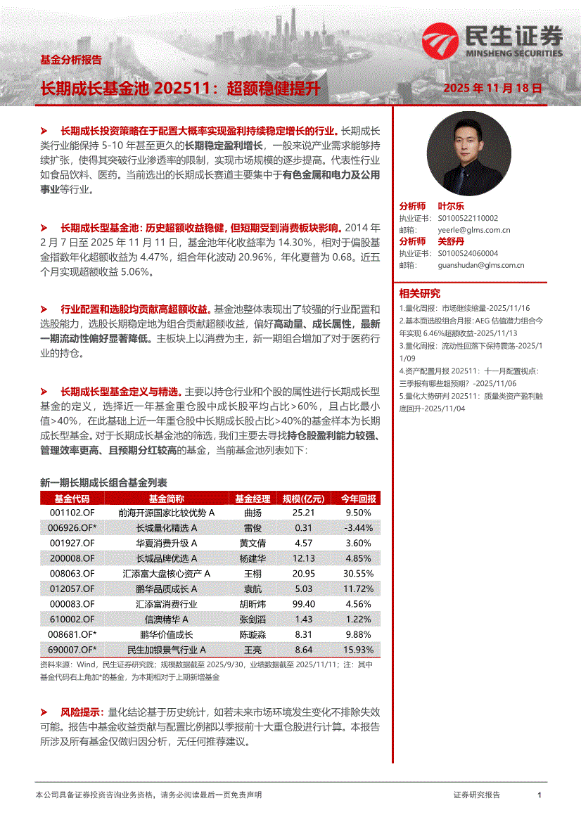 民生证券-基金分析报告:长期成长基金池202511,超额稳健提升-251118