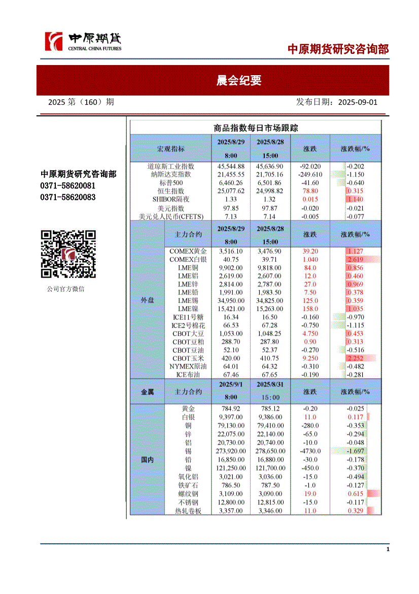 中原期货-晨会纪要-250901