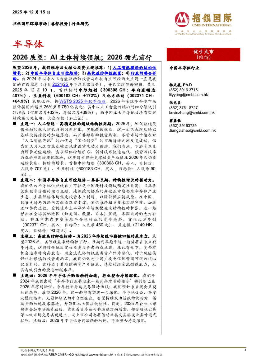 半导体行业:招银国际-半导体行业2026展望:AI主体持续领航;2026循光前行-251215