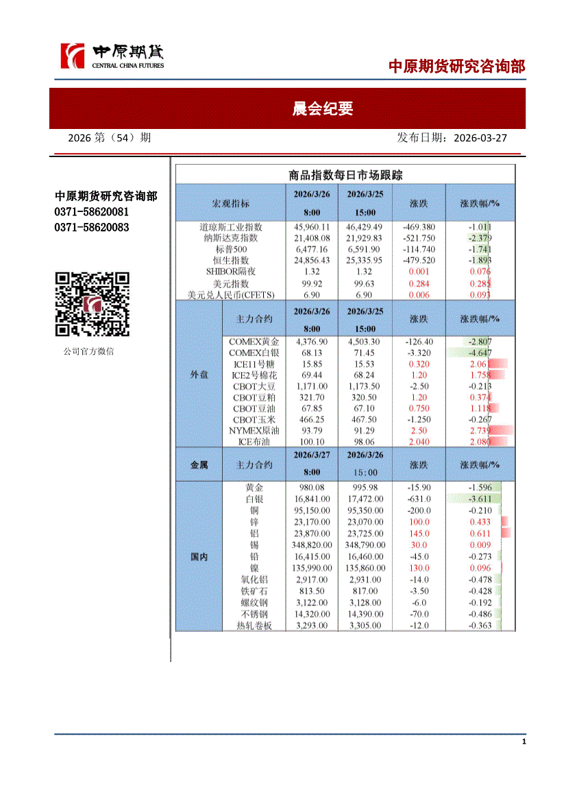 中原期货-晨会纪要-260327