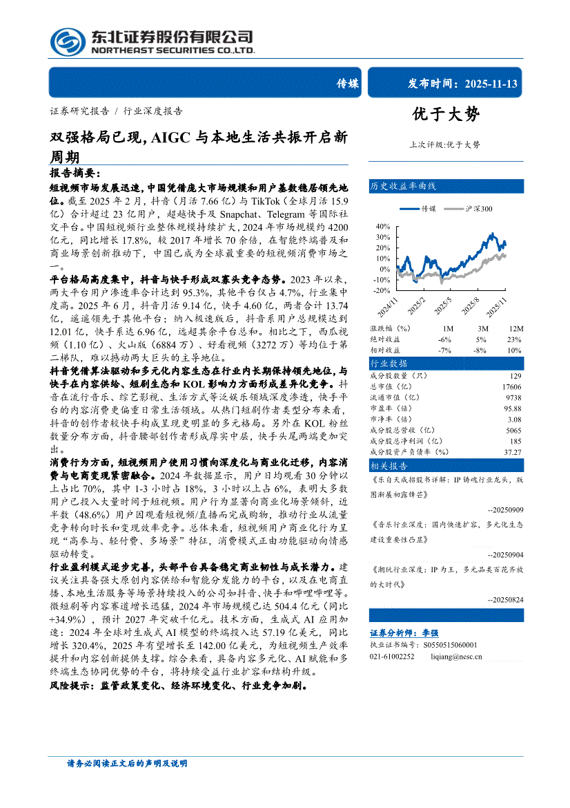 传媒行业:东北证券-传媒行业深度报告:双强格局已现,AIGC与本地生活共振开启新周期-251113