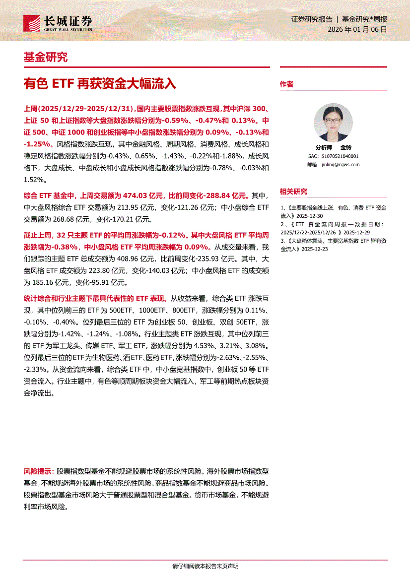 长城证券-基金研究周报:有色ETF再获资金大幅流入-260106