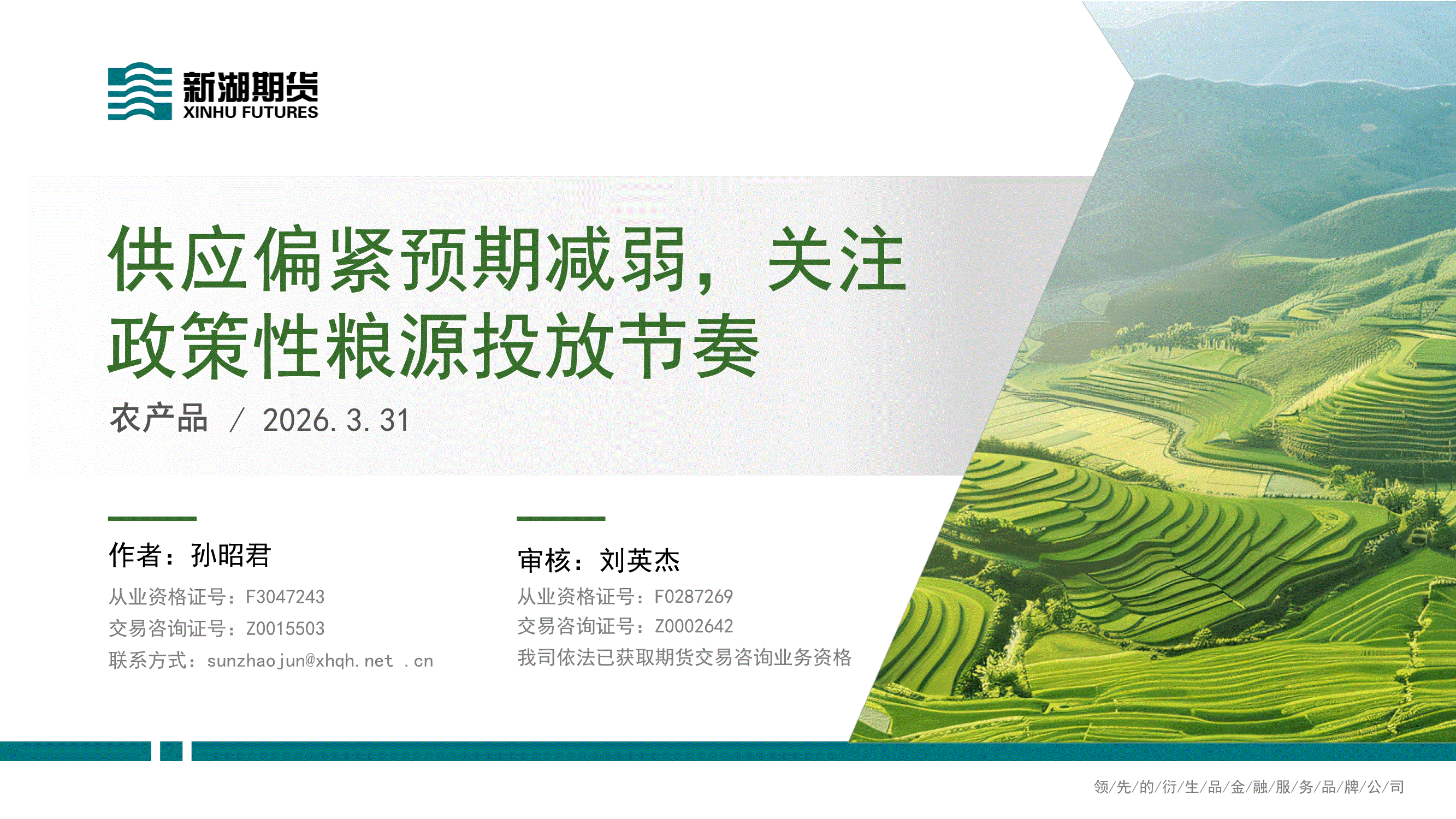 新湖期货-农产品:供应偏紧预期减弱,关注政策性粮源投放节奏-260331