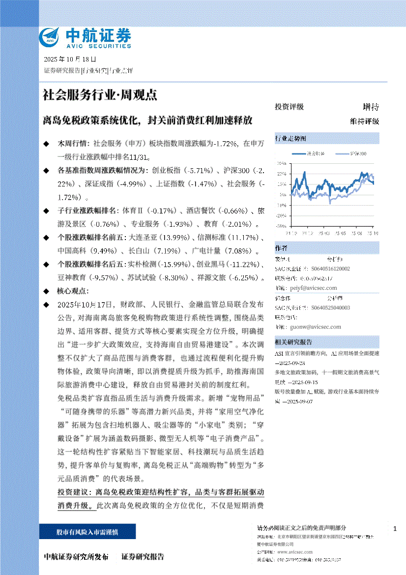 社会服务行业:中航证券-社会服务行业·周观点:离岛免税政策系统优化,封关前消费红利加速释放-251018