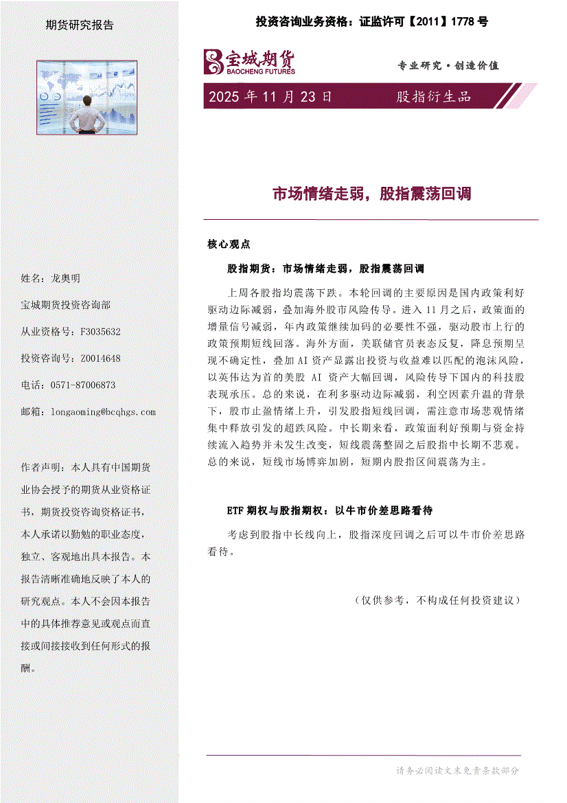 宝城期货-股指衍生品周报:市场情绪走弱,股指震荡回调-251123