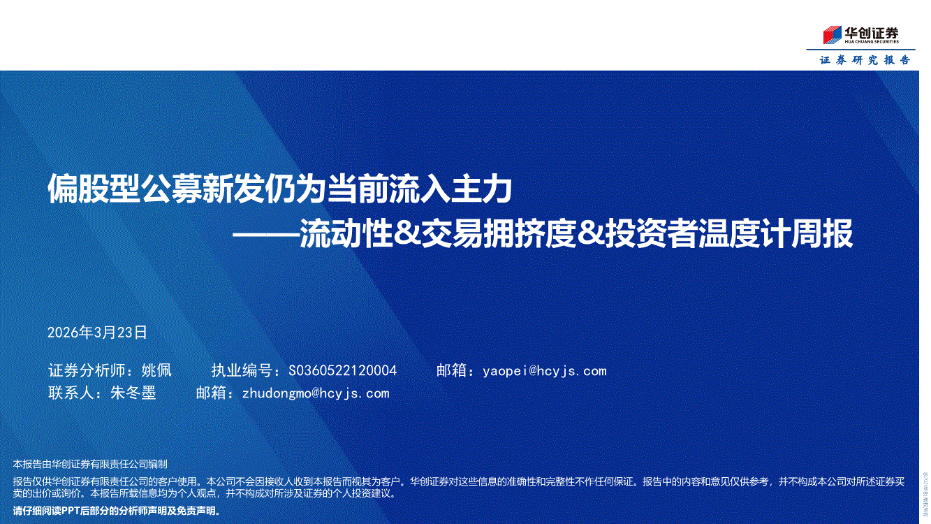 华创证券-流动性&交易拥挤度&投资者温度计周报:偏股型公募新发仍为当前流入主力-260323