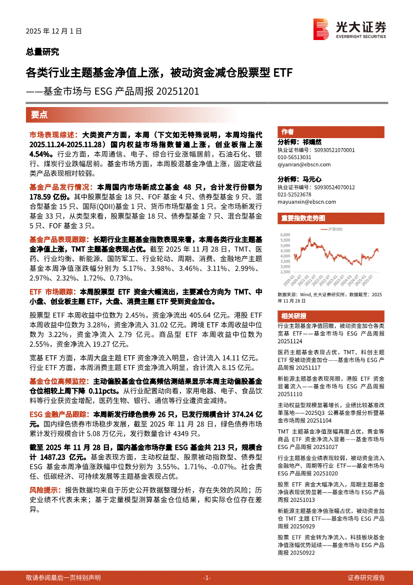 光大证券-基金市场与ESG产品周报:各类行业主题基金净值上涨,被动资金减仓股票型ETF-251201