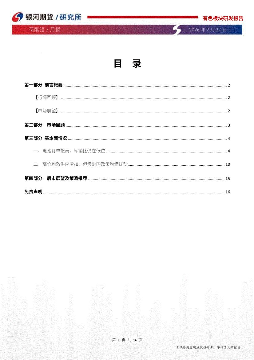 银河期货-碳酸锂3月报:锂价高位运行,新高有待观察-260227