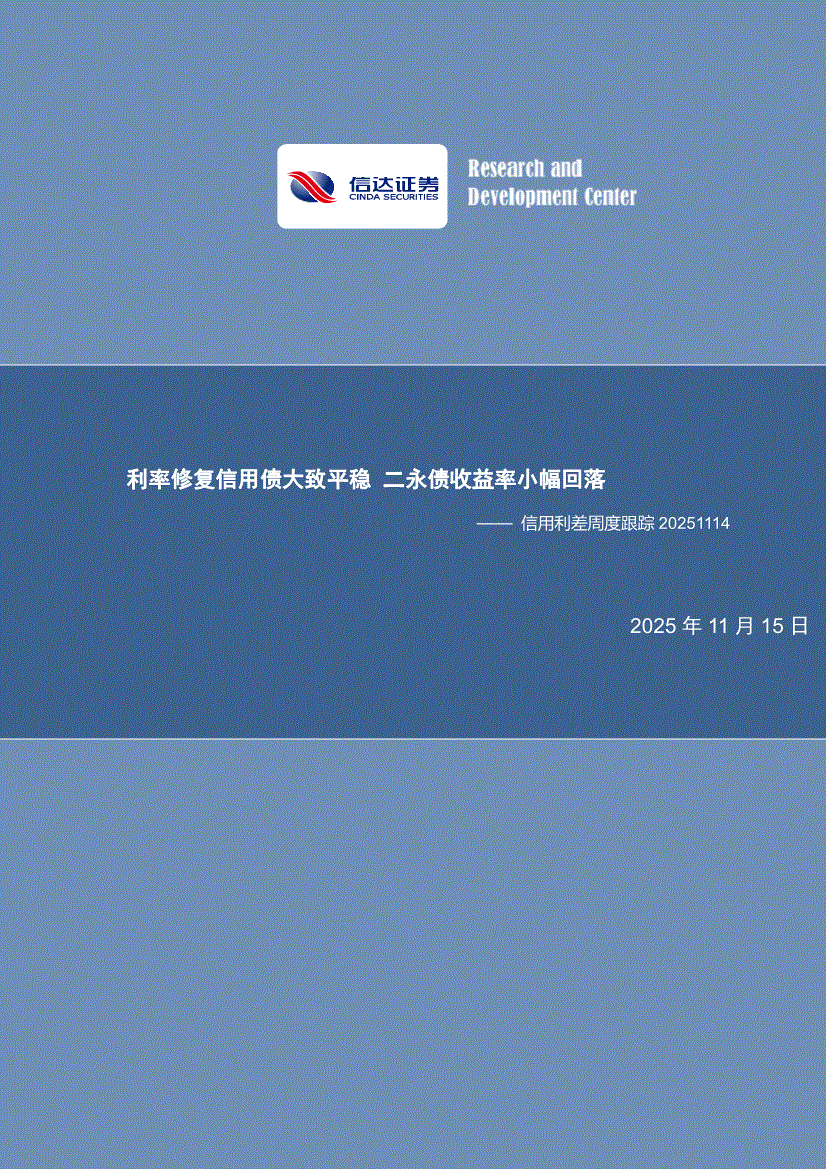 信达证券-信用利差周度跟踪:利率修复信用债大致平稳,二永债收益率小幅回落-251115