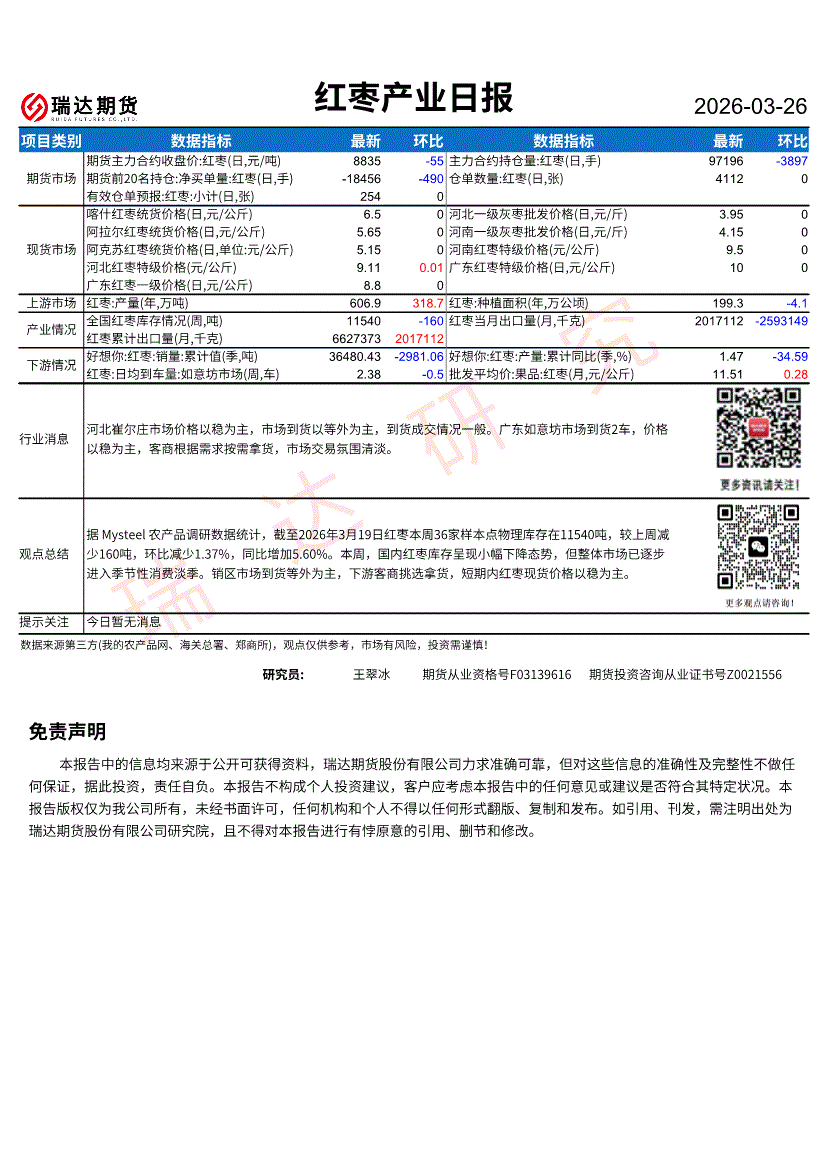 瑞达期货-红枣产业日报-260326