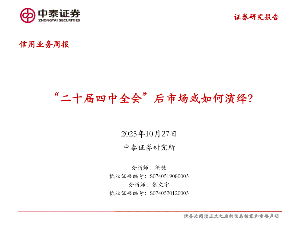 中泰证券-信用业务周报:“二十届四中全会”后市场或如何演绎?-251027