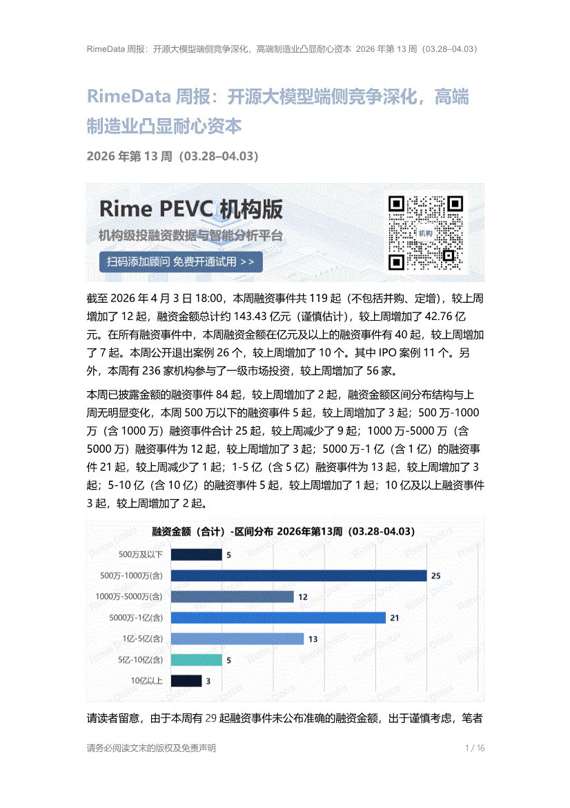 来觅研究院-RimeData周报:开源大模型端侧竞争深化,高端制造业凸显耐心资本2026年第13周-260403