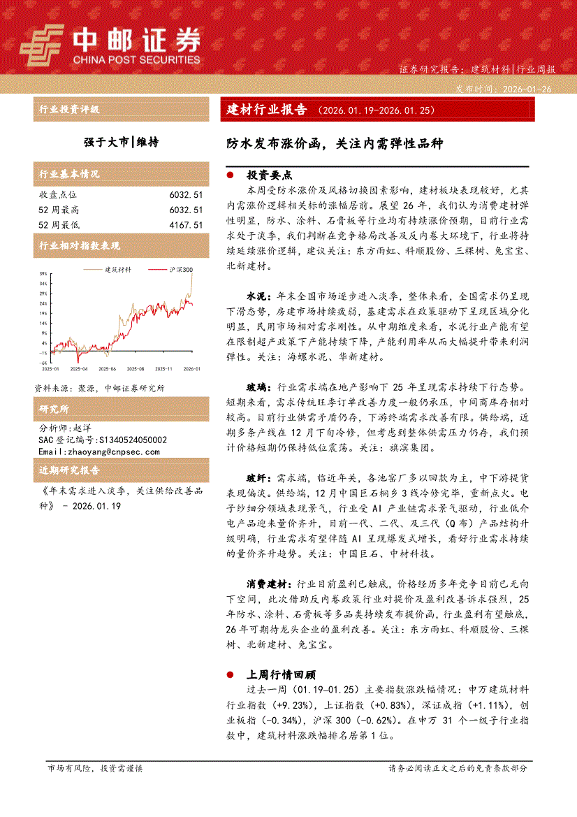 建筑材料行业:中邮证券-建筑材料行业周报:防水发布涨价函,关注内需弹性品种-260126