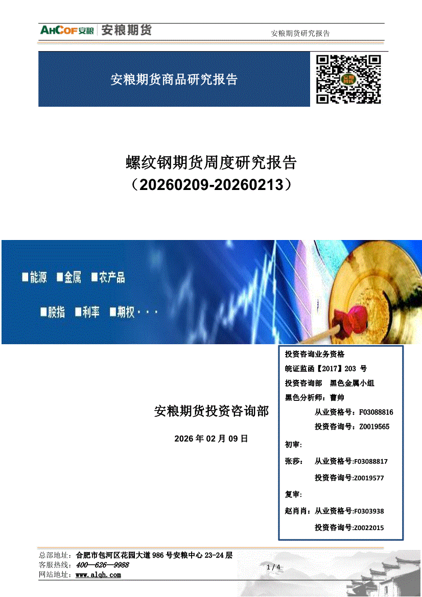 安粮期货-螺纹钢期货周度研究报告:表需走弱+累库,钢材震荡运行-260209