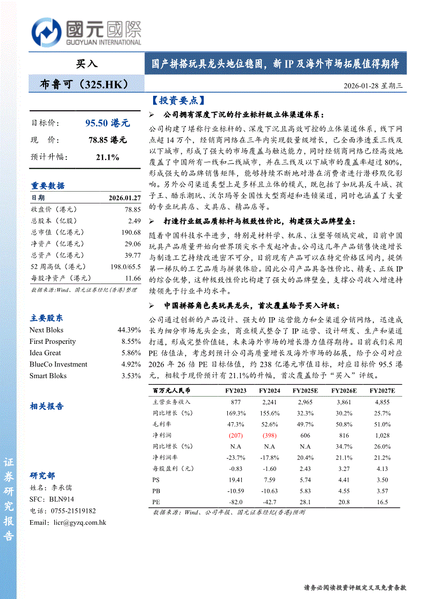 布鲁可:国元国际-布鲁可-0325.HK-国产拼搭玩具龙头地位稳固,新IP及海外市场拓展值得期待-260128