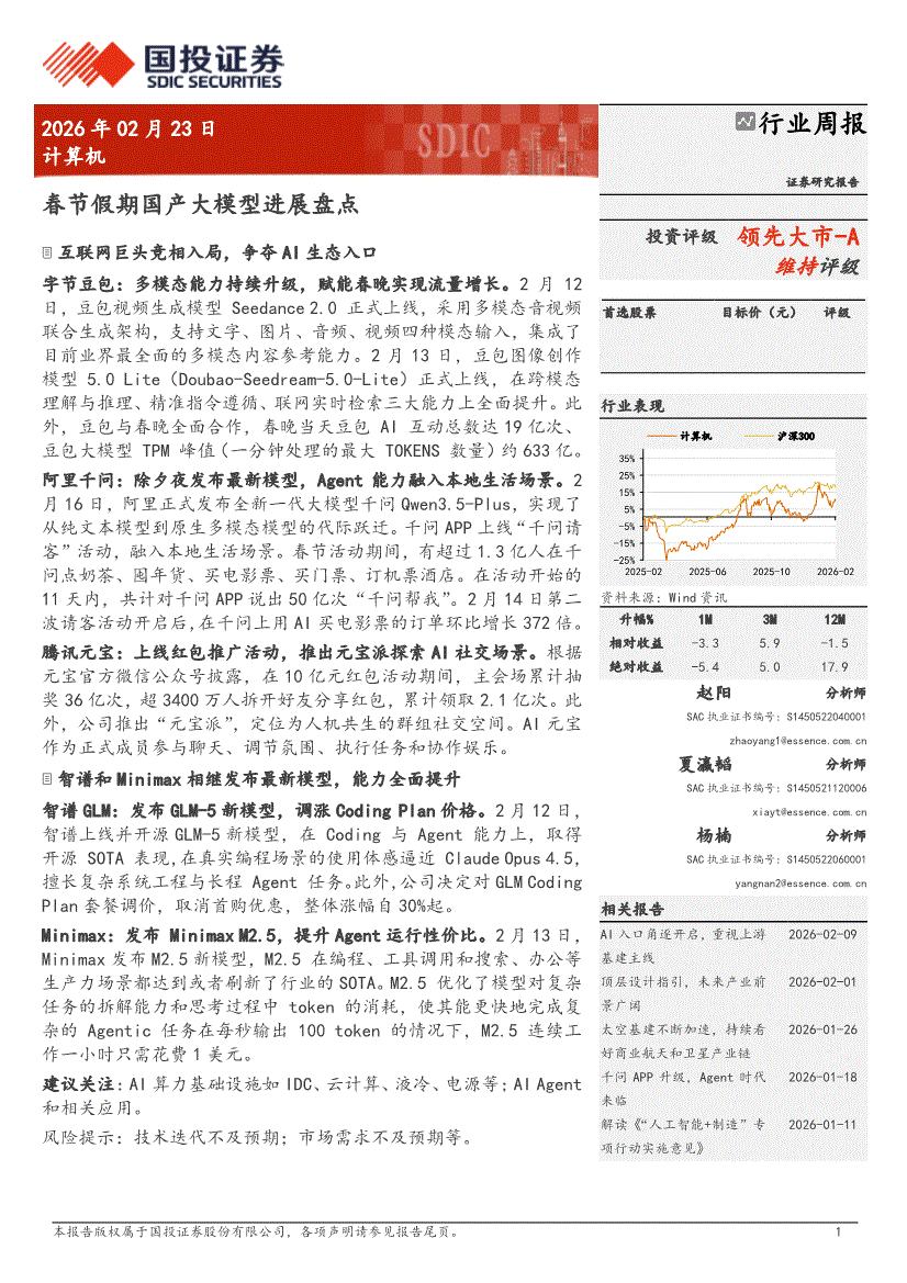 计算机行业:国投证券-计算机行业周报:春节假期国产大模型进展盘点-260223