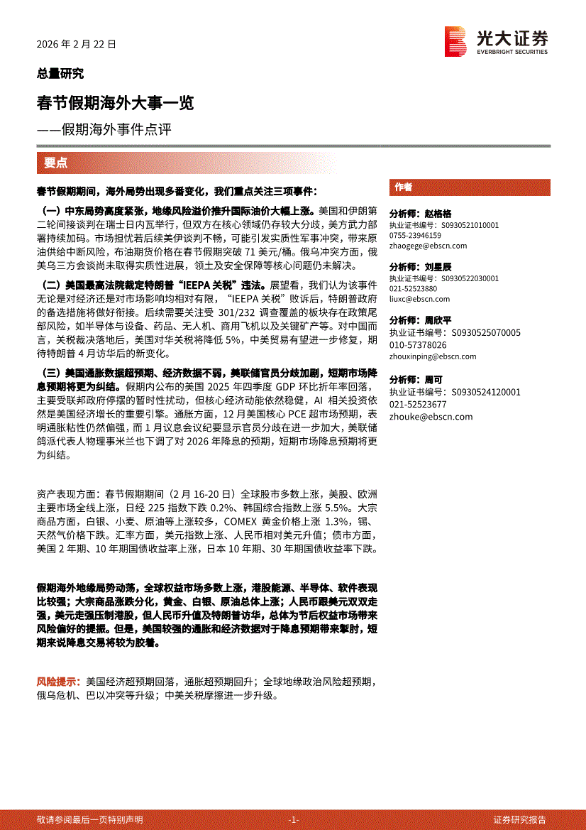 光大证券-假期海外事件点评:春节假期海外大事一览-260222