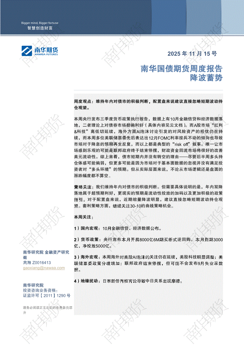 南华期货-国债期货周度报告:同时迎接压力与买点-251026