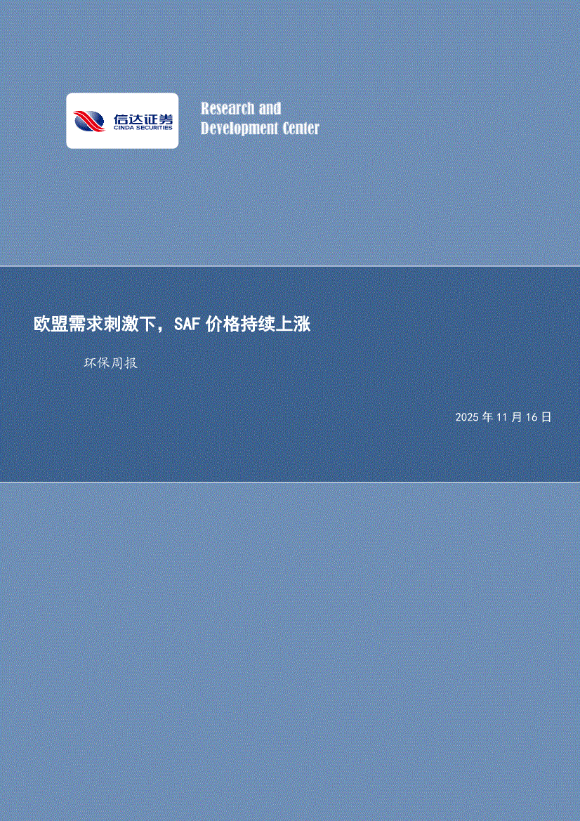 环保行业:信达证券-环保行业周报:欧盟需求刺激下,SAF价格持续上涨-251116