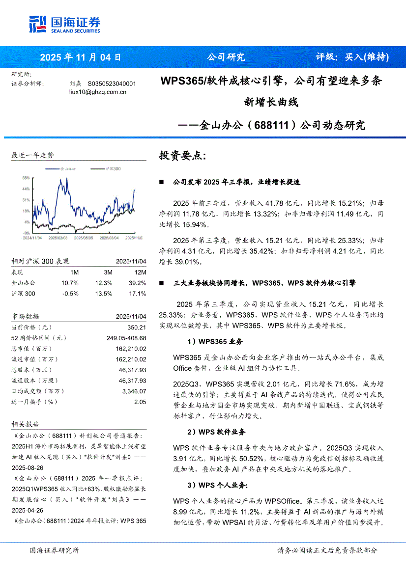 金山办公:国海证券-金山办公-688111-公司动态研究:WPS365/软件成核心引擎,公司有望迎来多条新增长曲线-251104
