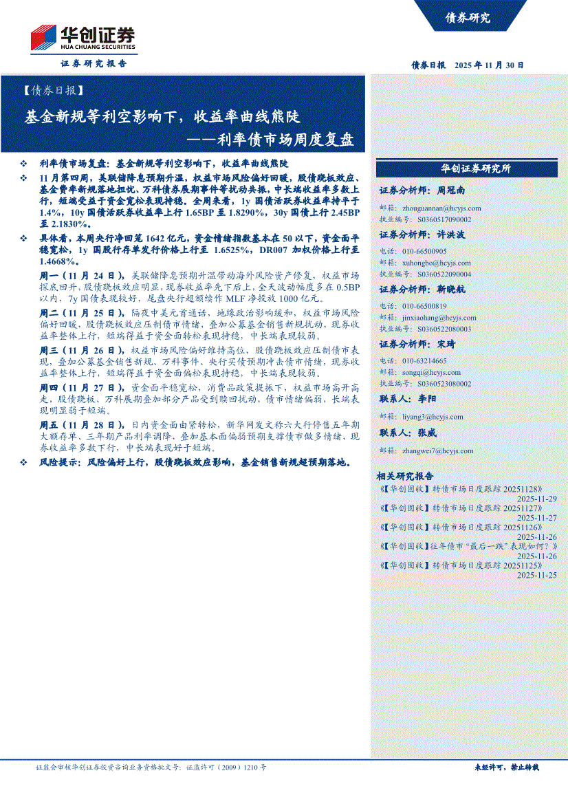 华创证券-【债券日报】利率债市场周度复盘:基金新规等利空影响下,收益率曲线熊陡-251130