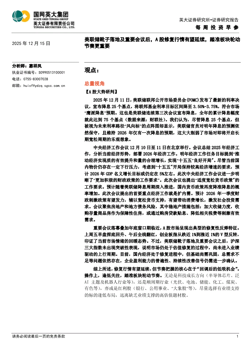 英大证券-每周投资早参-251215