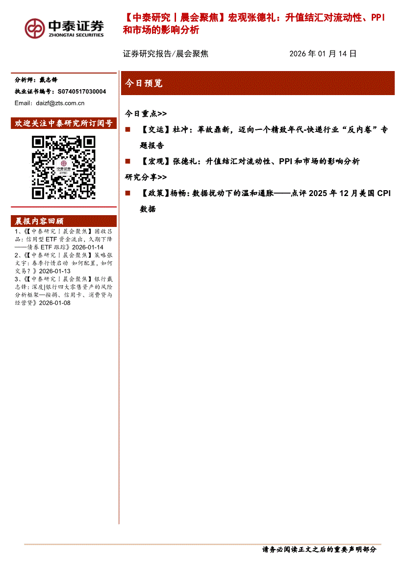 中泰证券-晨会聚焦-260114