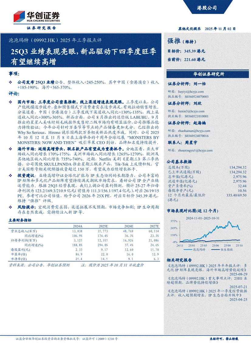 泡泡玛特:华创证券-泡泡玛特-9992.HK-2025年三季报点评:25Q3业绩表现亮眼,新品驱动下四季度旺季有望继续高增-251102