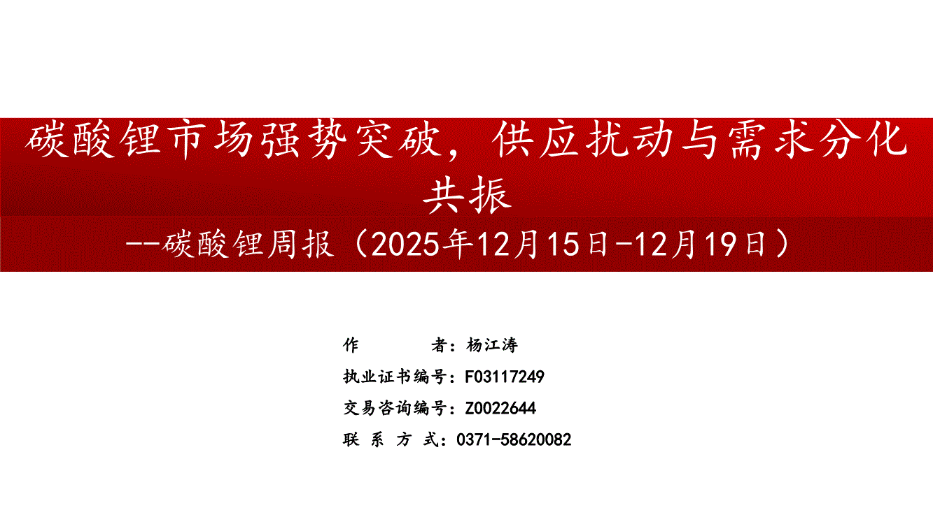 中原期货-碳酸锂周报:碳酸锂市场强势突破,供应扰动与需求分化共振-251219