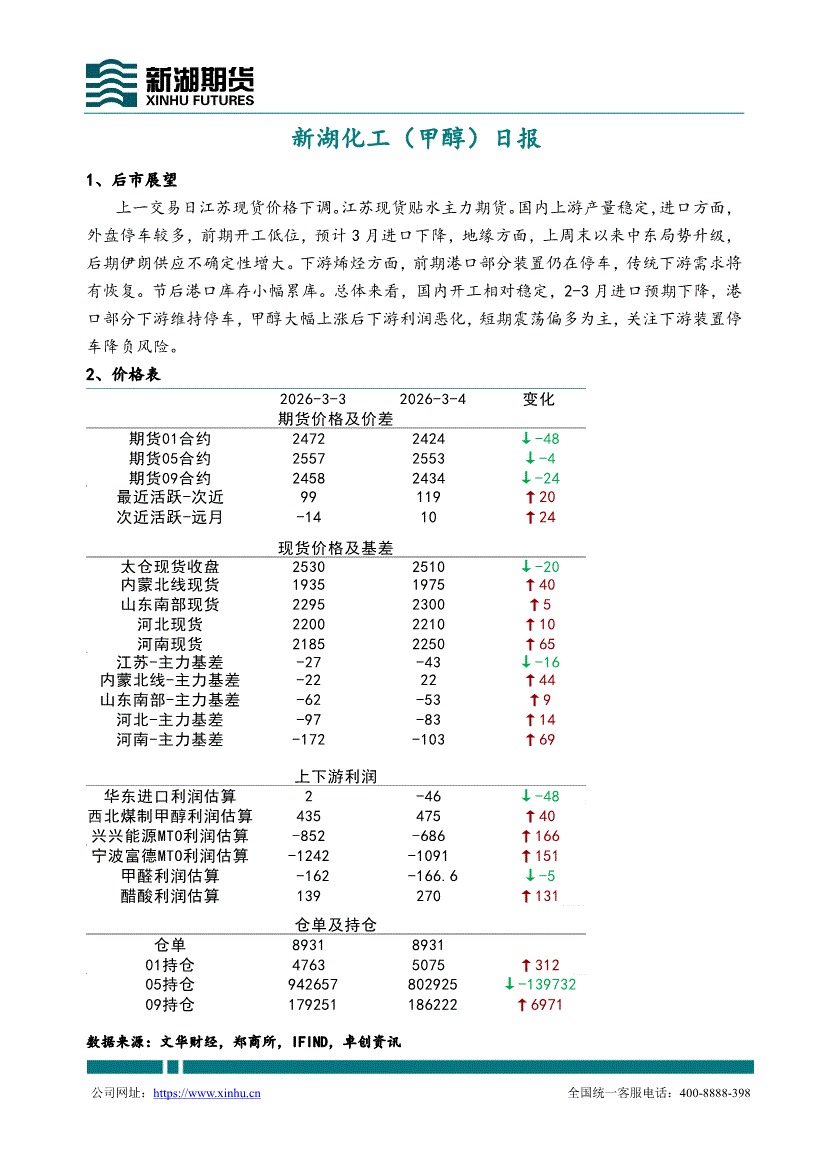 新湖期货-化工(甲醇)日报-260304