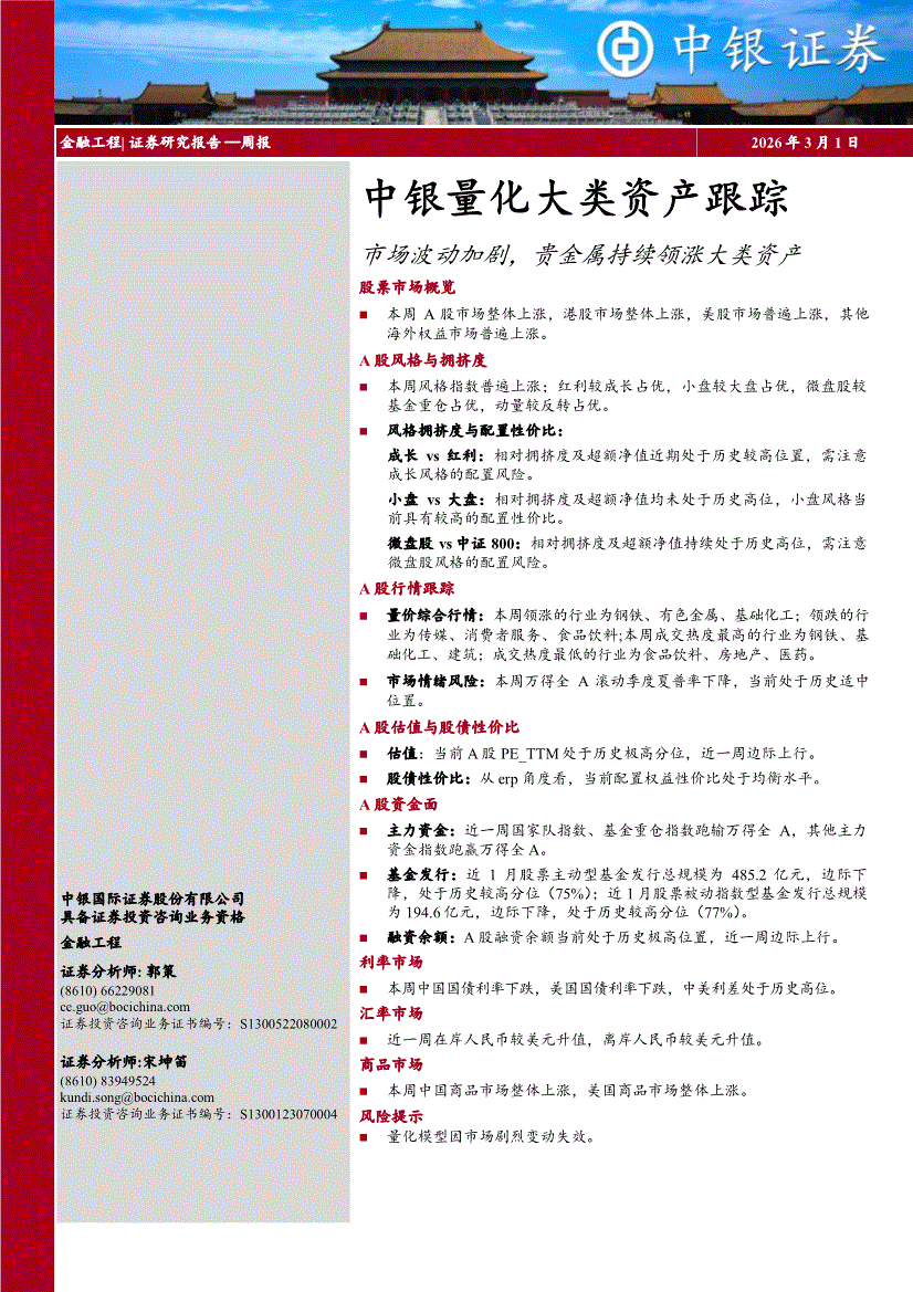 中银国际-量化大类资产跟踪:市场波动加剧,贵金属持续领涨大类资产-260301