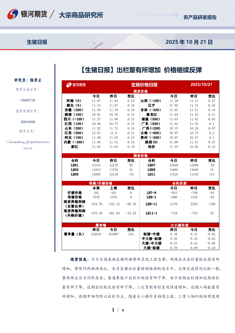 银河期货-【生猪日报】出栏量有所增加,价格继续反弹-251021