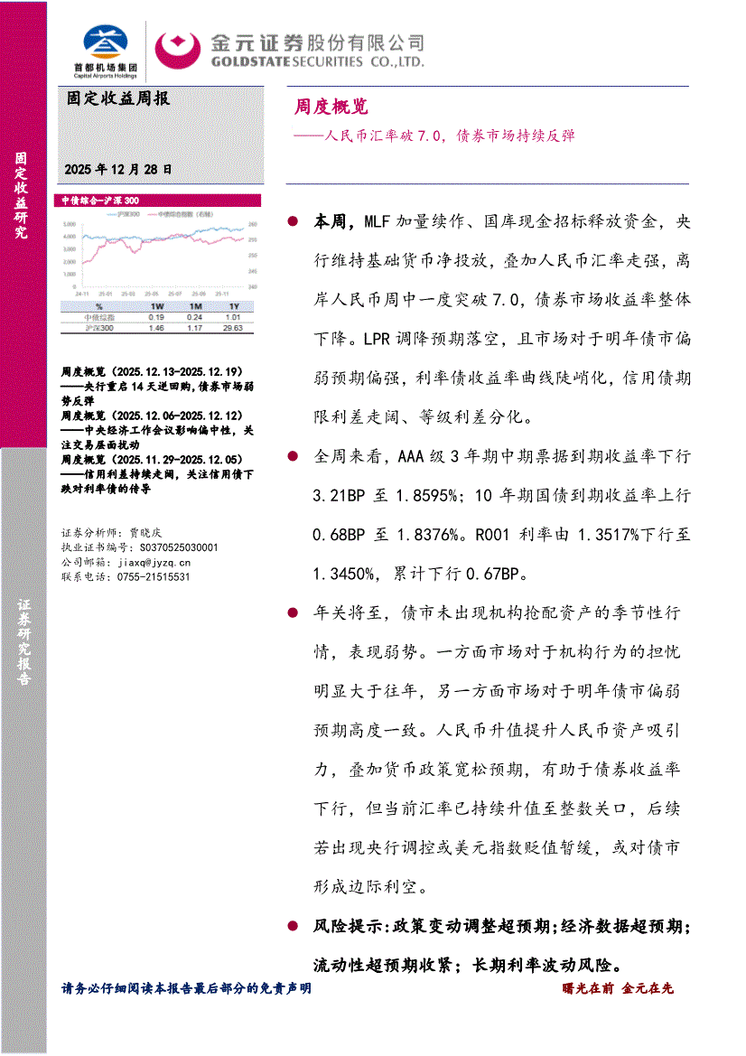 金元证券-周度概览:人民币汇率破7.0,债券市场持续反弹-251228