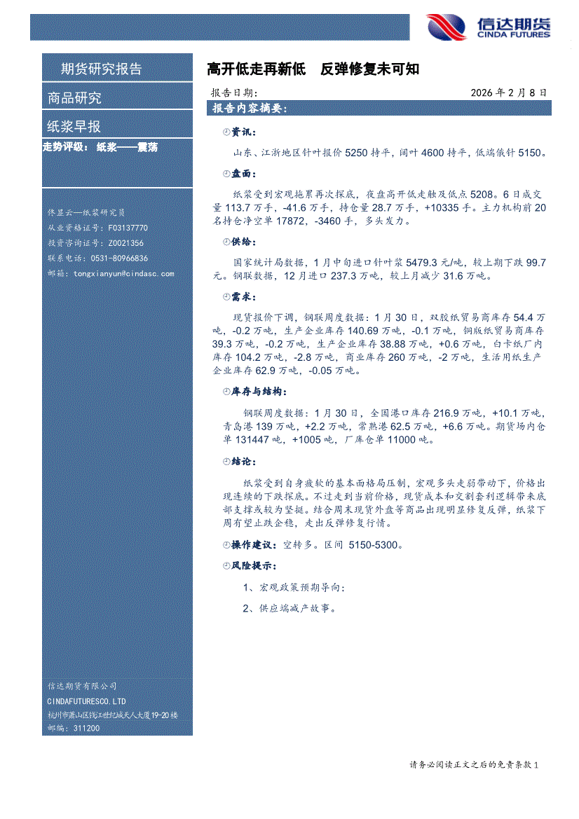 信达期货-纸浆早报:高开低走,承压探底-260205