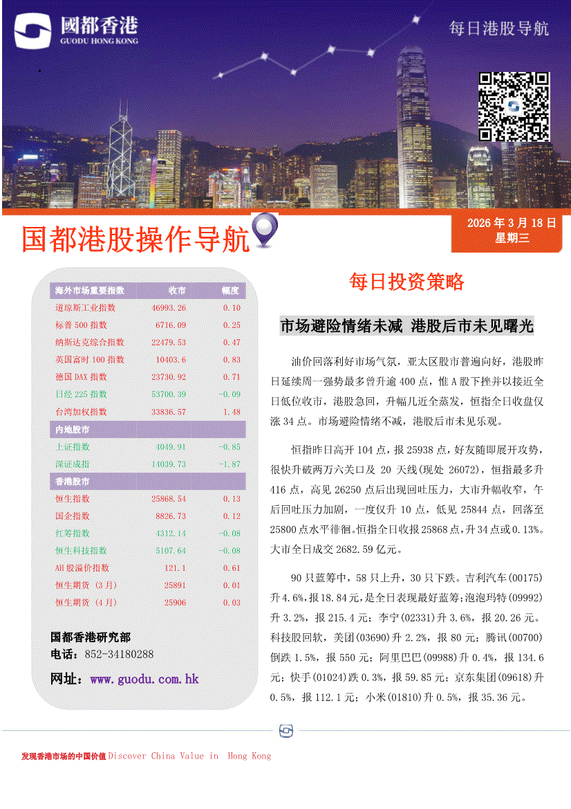 国都证券(香港)-每日港股导航-260318