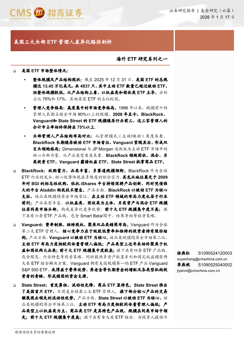 招商证券-海外ETF研究系列之一:美国三大头部ETF管理人差异化路径剖析-260118