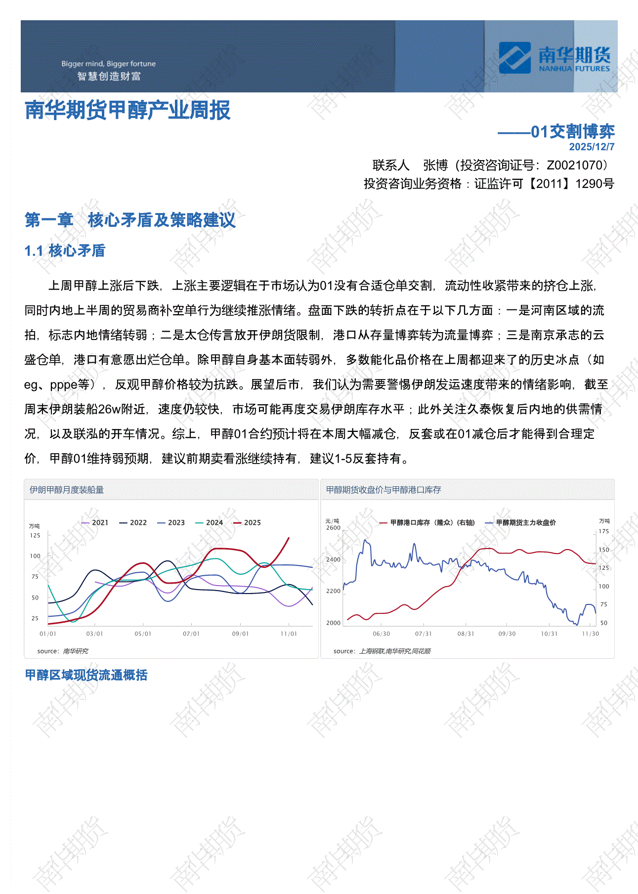 南华期货-甲醇产业周报:01维持弱预期-251130
