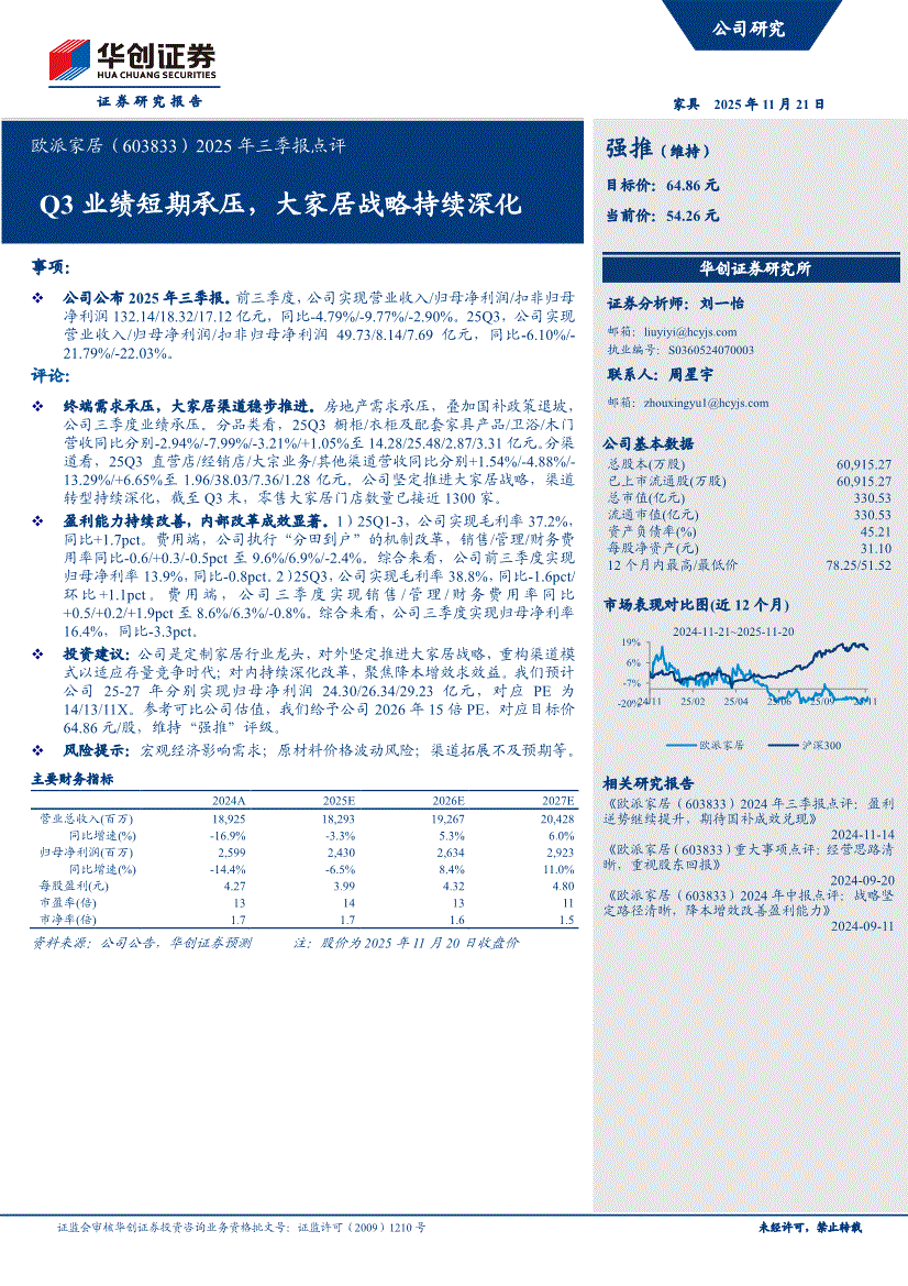 欧派家居:华创证券-欧派家居-603833-2025年三季报点评:Q3业绩短期承压,大家居战略持续深化-251121