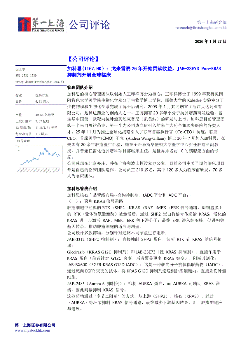 加科思:第一上海-加科思-1167.HK-戈来雷赛26年开始贡献收益,JAB~23E73 Pan~KRAS抑制剂开展全球临床-260127
