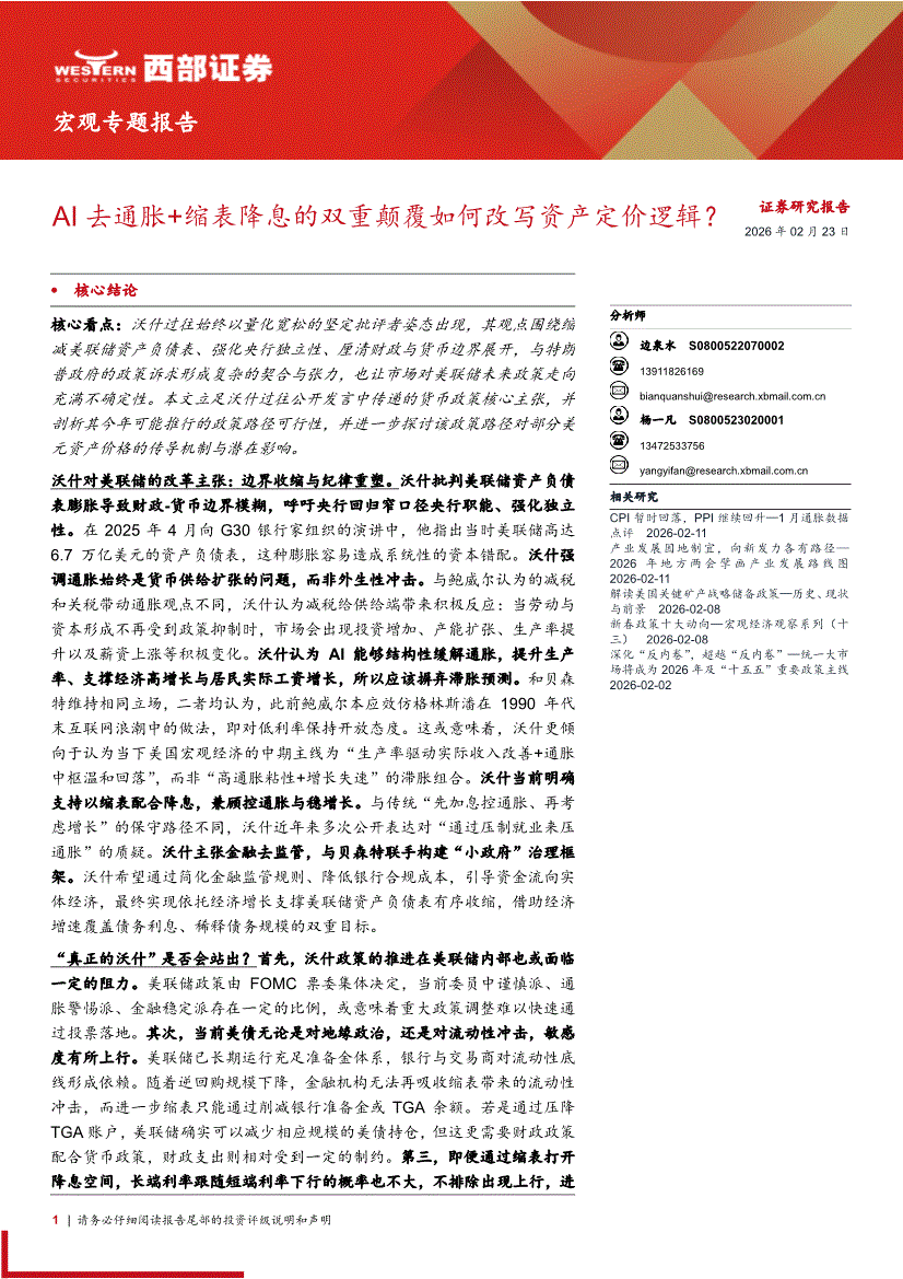 西部证券-宏观专题报告:AI去通胀+缩表降息的双重颠覆如何改写资产定价逻辑?-260223