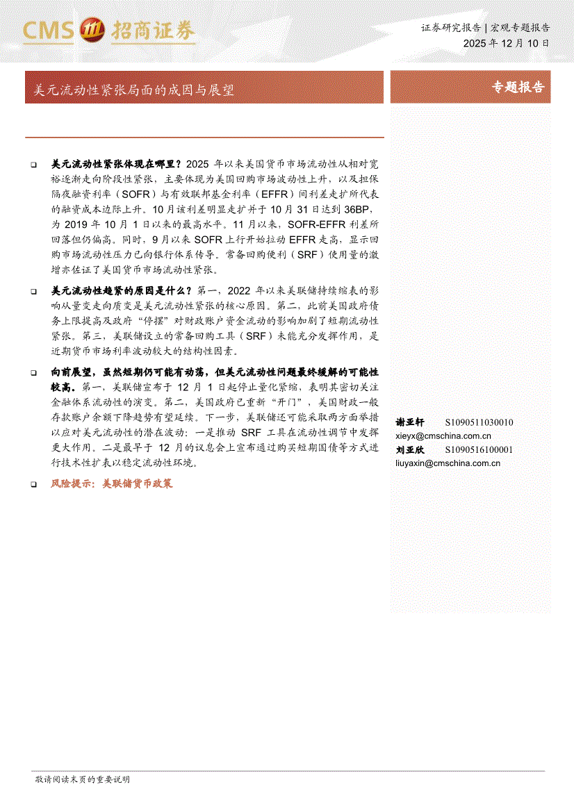 招商证券-美元流动性紧张局面的成因与展望-251210