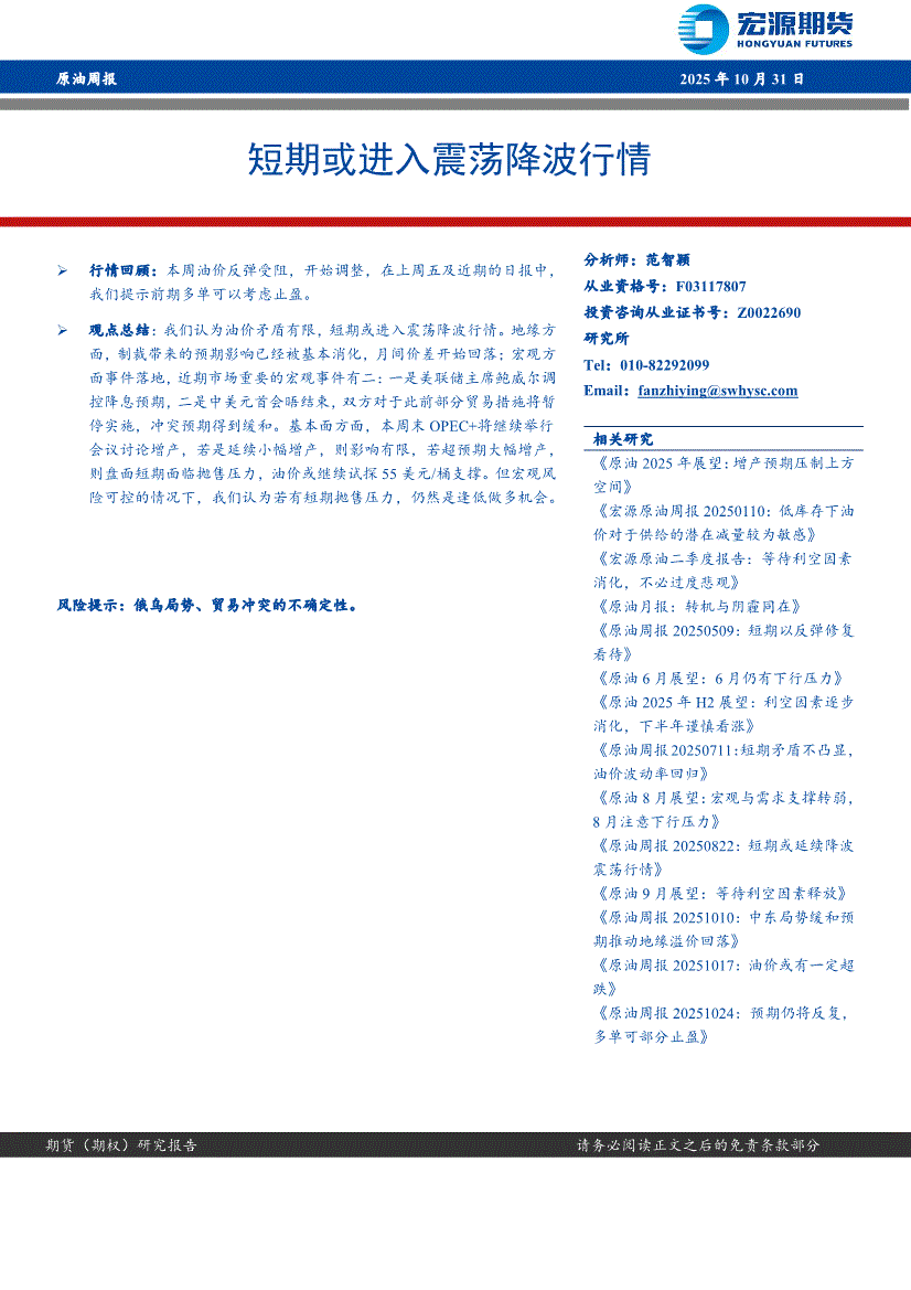宏源期货-原油周报:短期或进入震荡降波行情-251031
