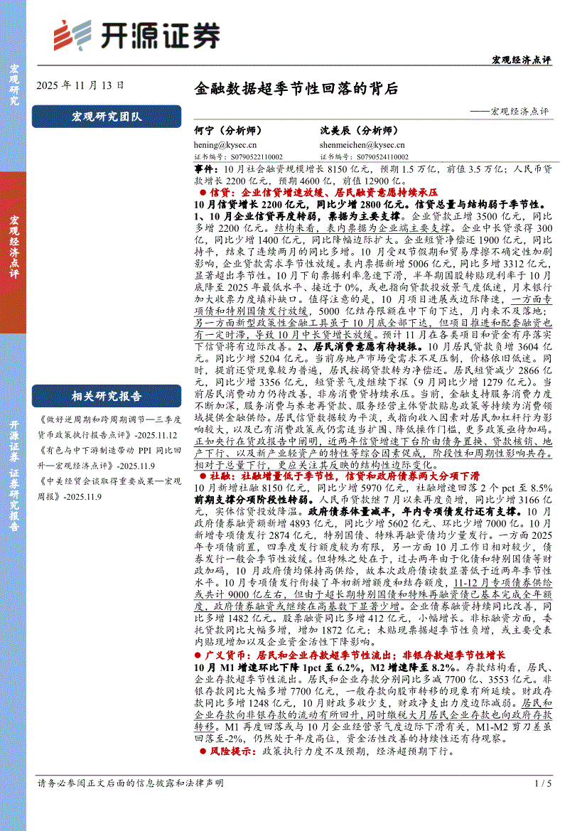 开源证券-宏观经济点评:金融数据超季节性回落的背后-251113
