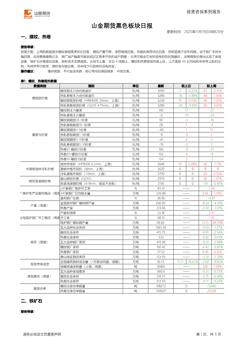 山金期货-螺纹热卷周报:低估值叠加驱动向下,期价仍承压-251117