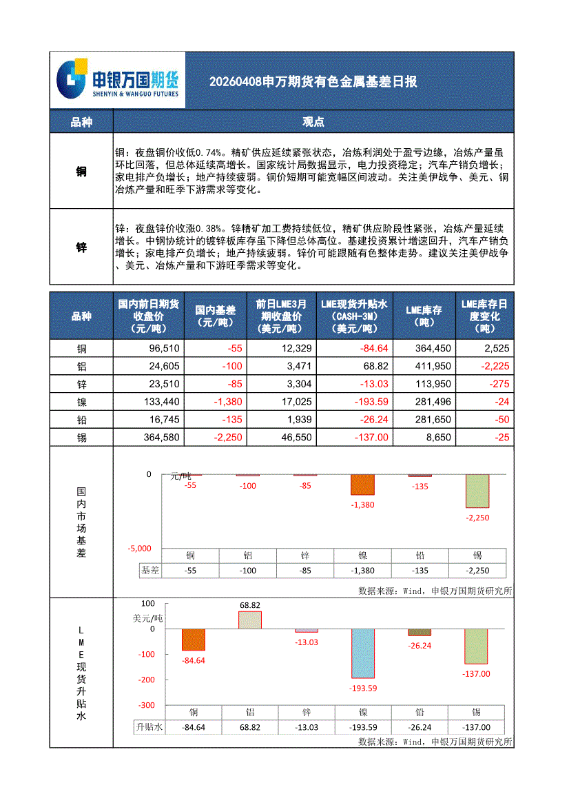 申银万国期货-有色金属基差日报-260408