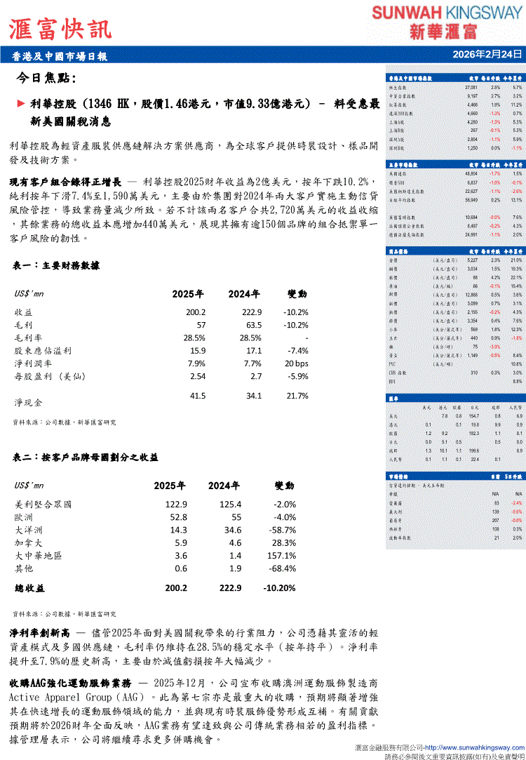 新华汇富-汇富快讯:香港及中国市场日报-260224