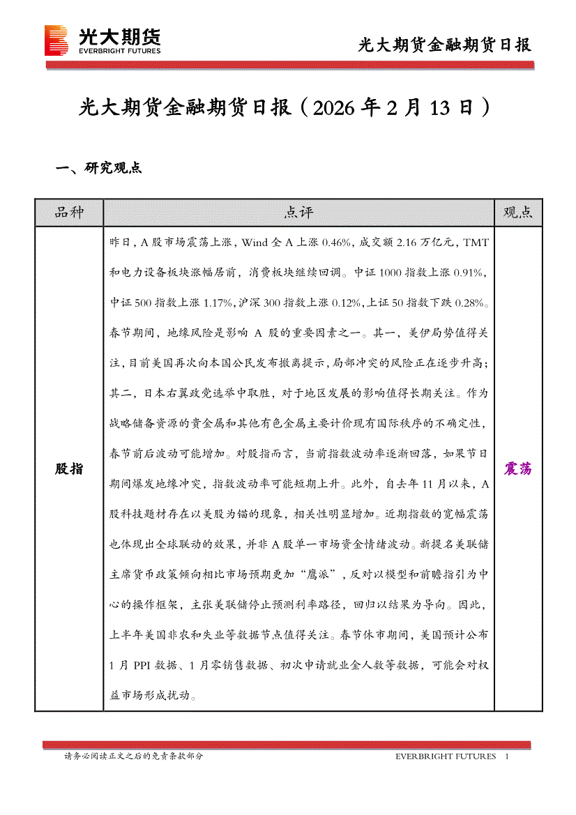 光大期货-金融期货日报-260213